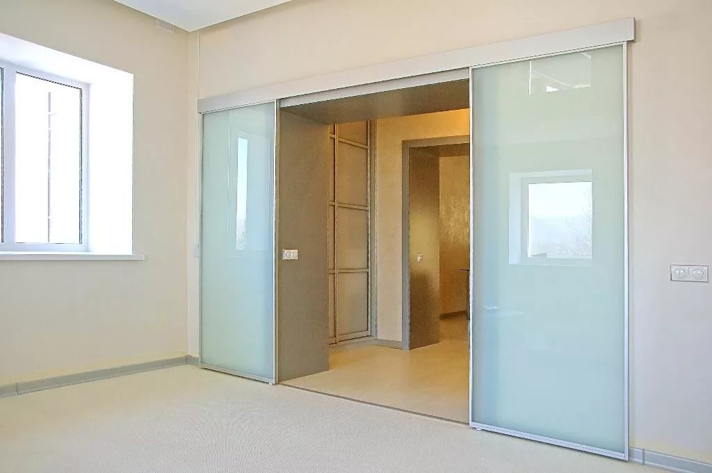 Раздвижная перегородка с золотым профилем и рифленым стеклом