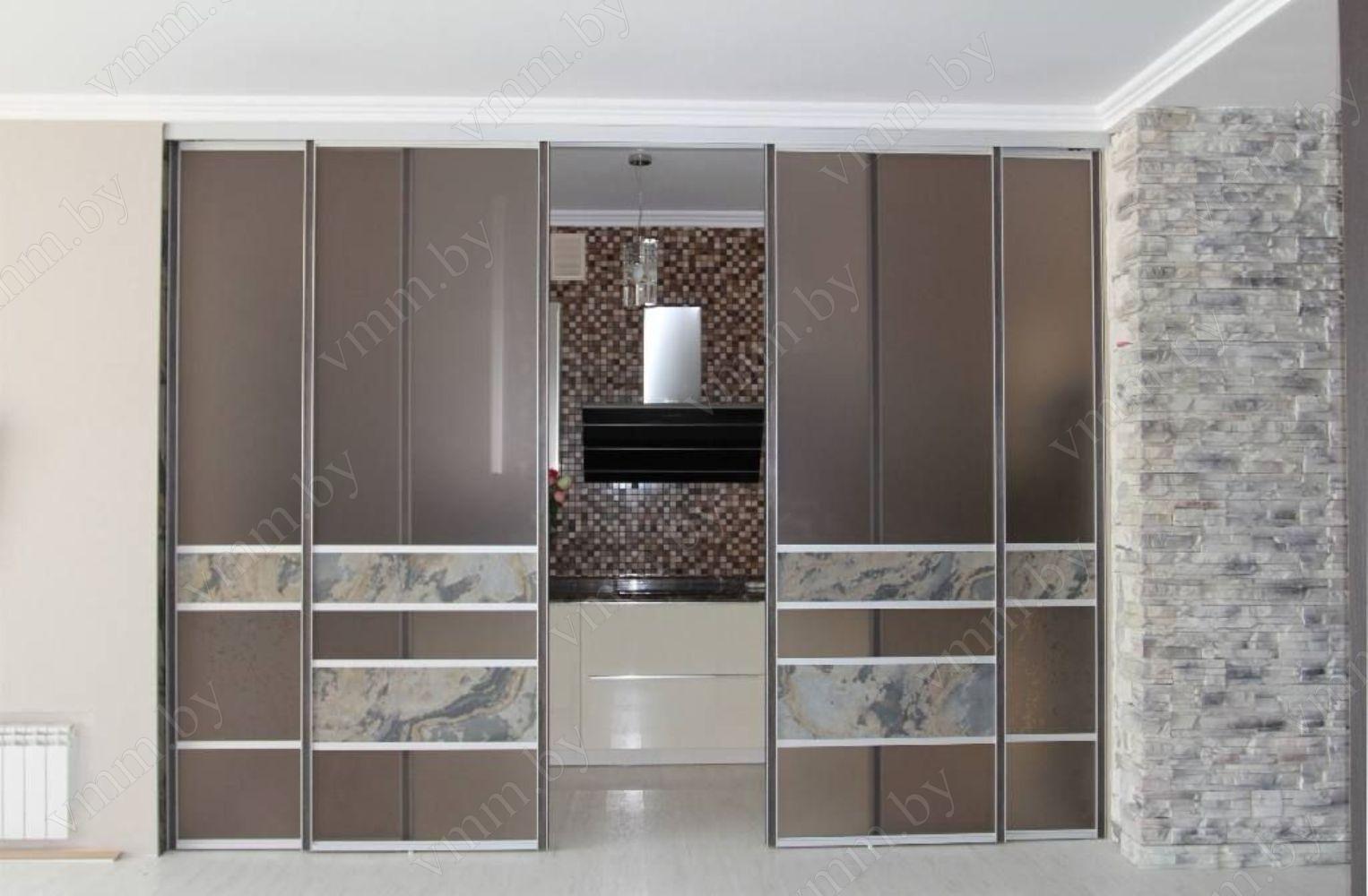 Раздвижная перегородка на направляющих из непрозрачного материала.