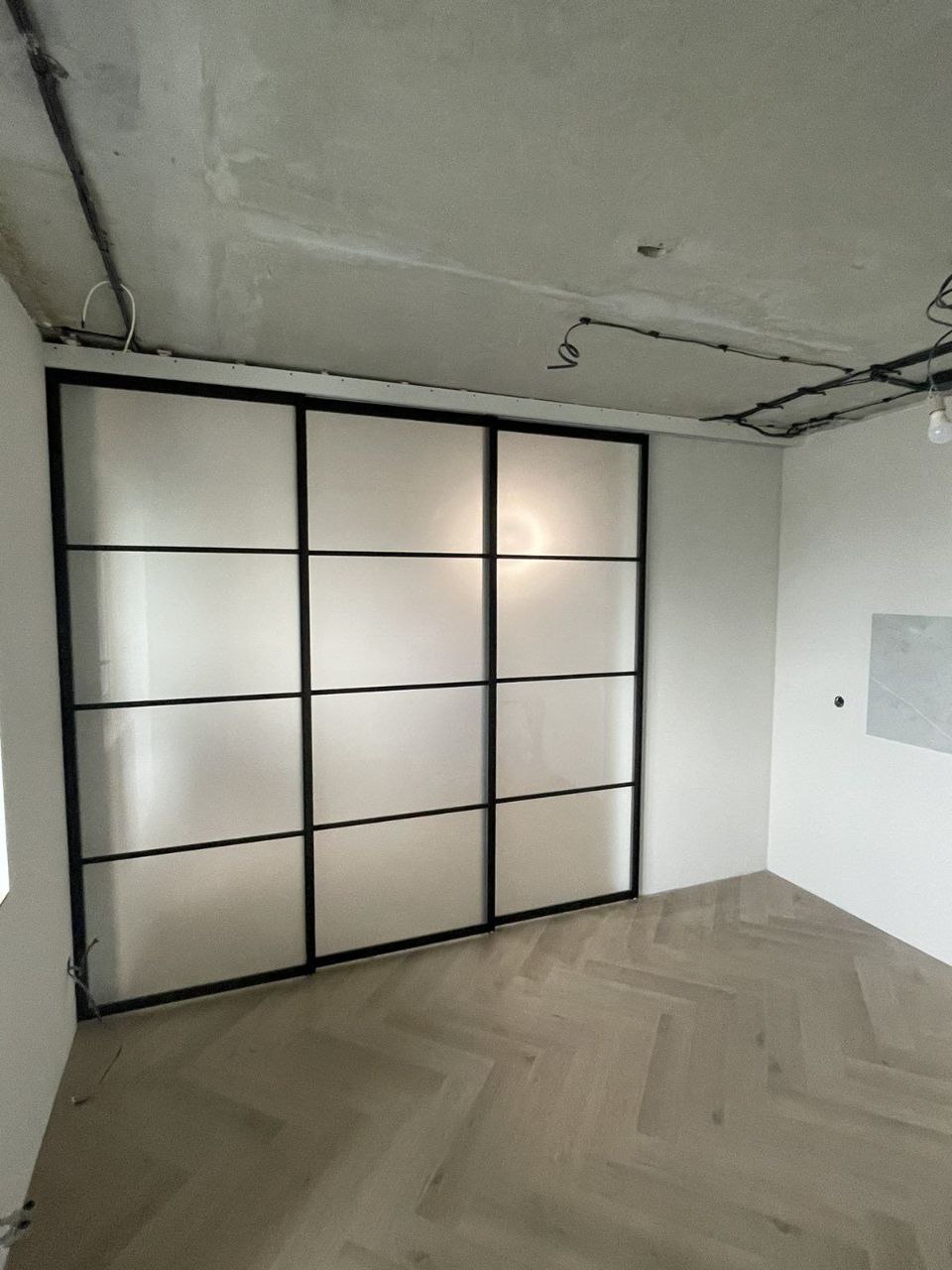 Подойдет для зонирования пространства в гостиной, спальне, гардеробной или даже кухни. Перегородка представляет собой полотно из профиля, который может быть наполнен стеклом, пластиком, акрилом или их комбинациями. Раздвижной механизм позволяет перемещать створки вдоль направляющих в одну или обе стороны.