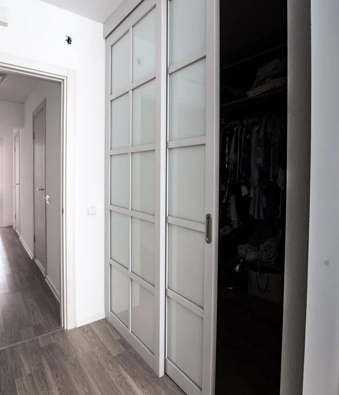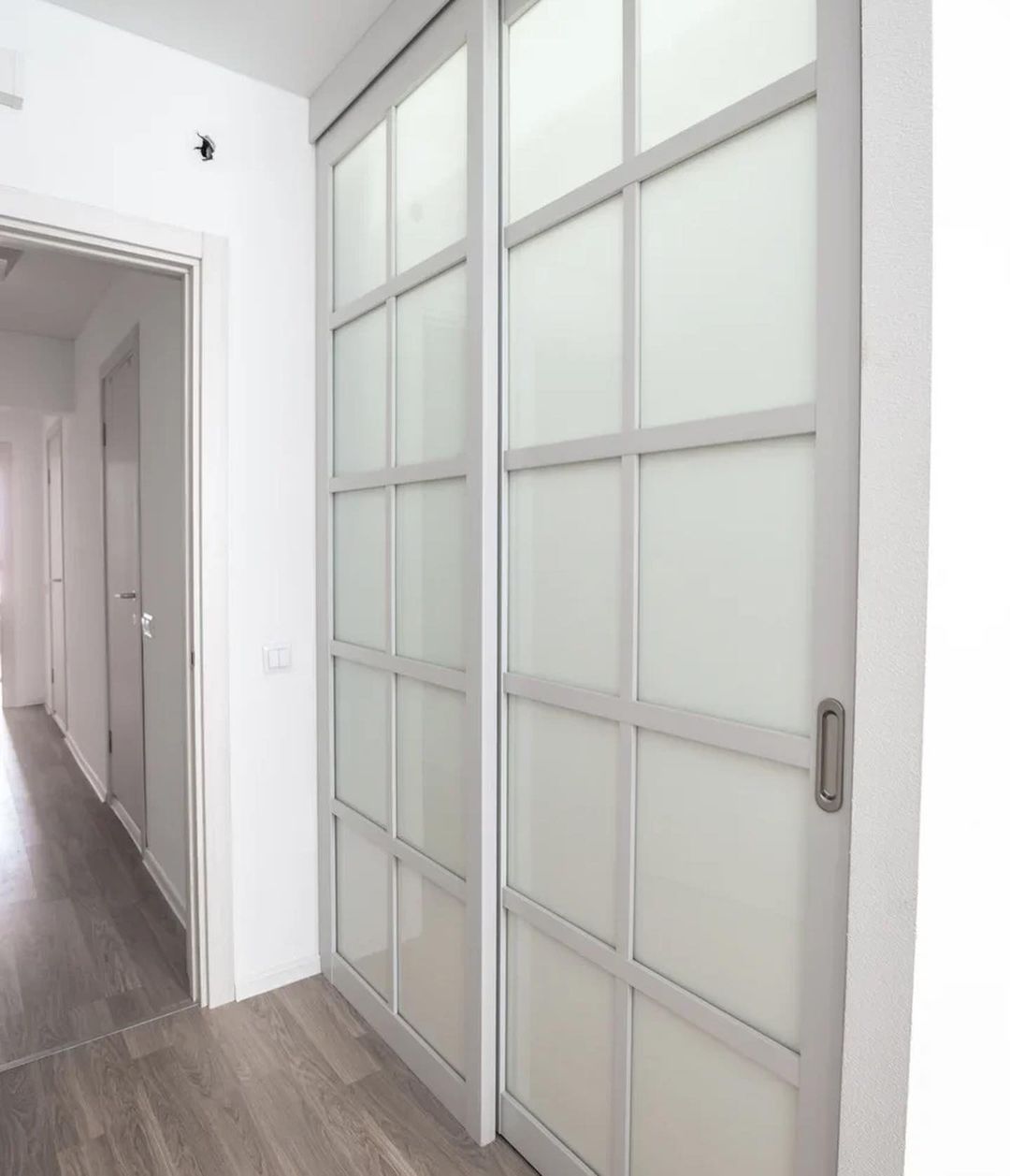 код 117593Белый профиль, матовое стекло, надежный раздвижной механизм.