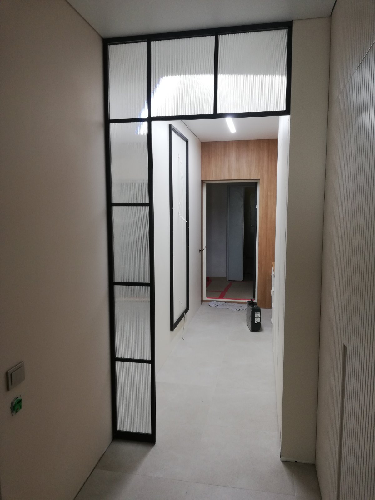 код 123012Перегородка для коридора. Непрозрачное стекло. Изготовление по индивидуальным размерам под любой стиль интерьера.