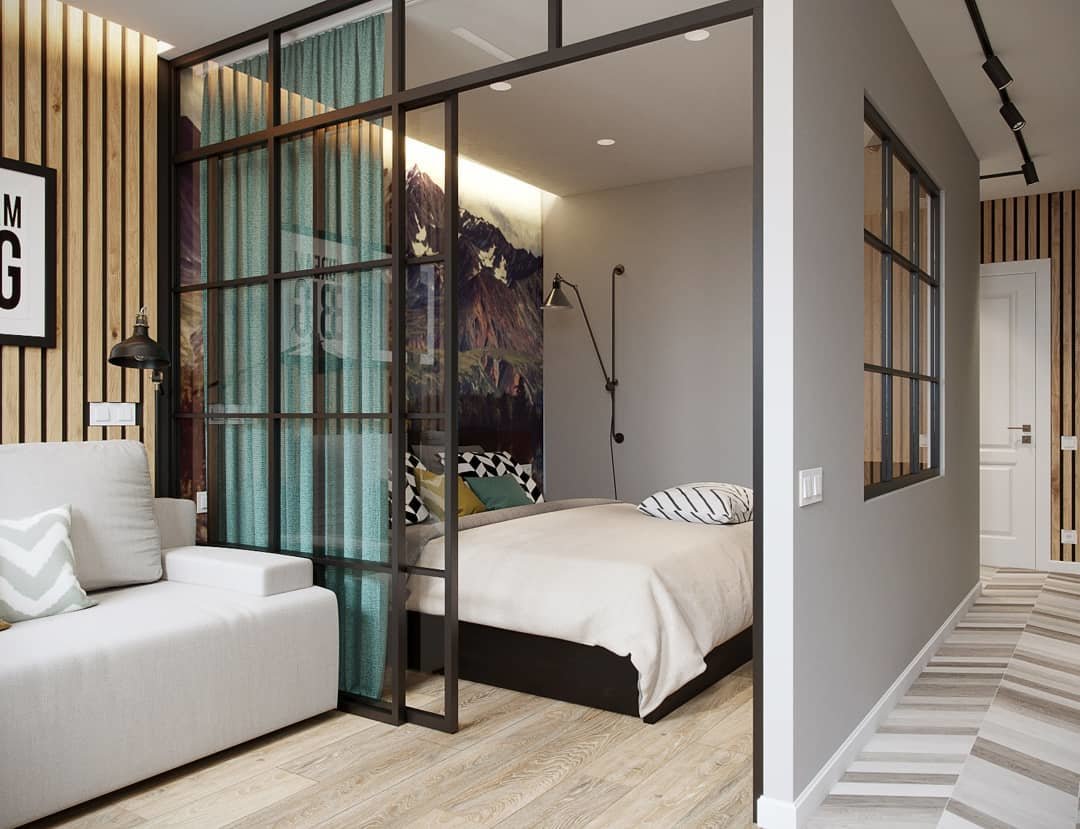 Перегородка в спальню с черным профилем