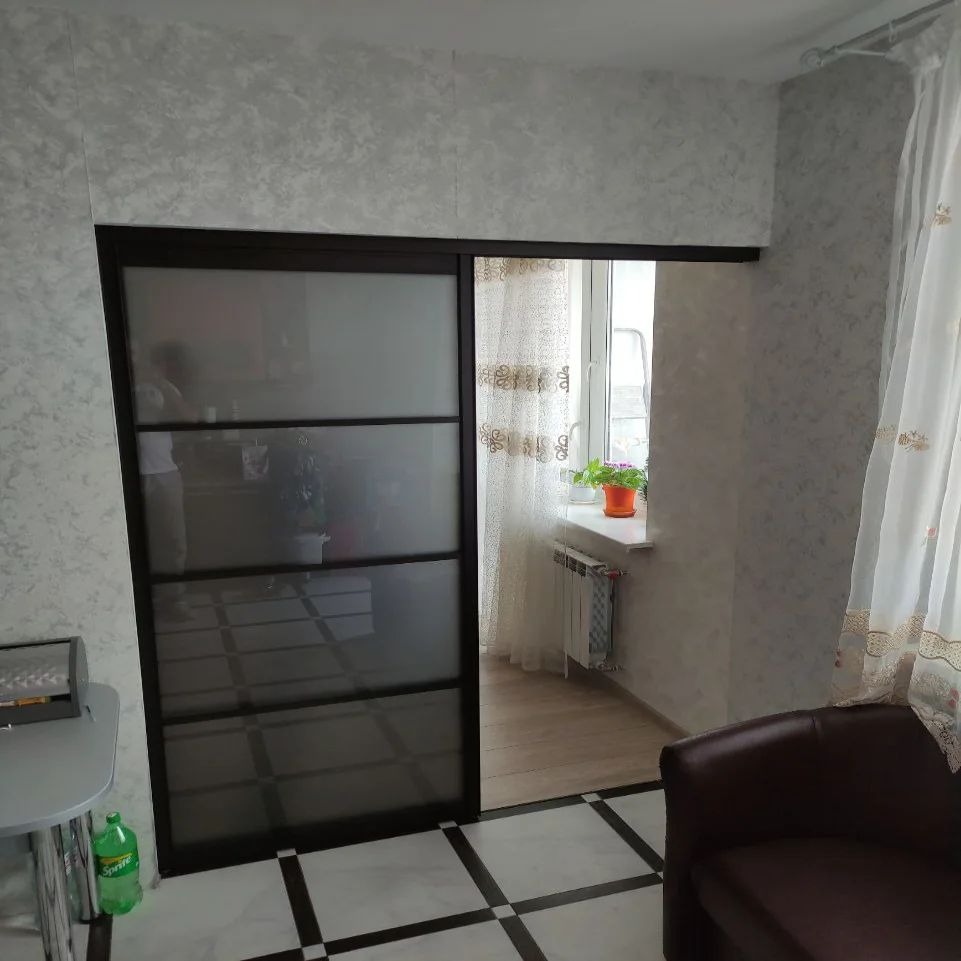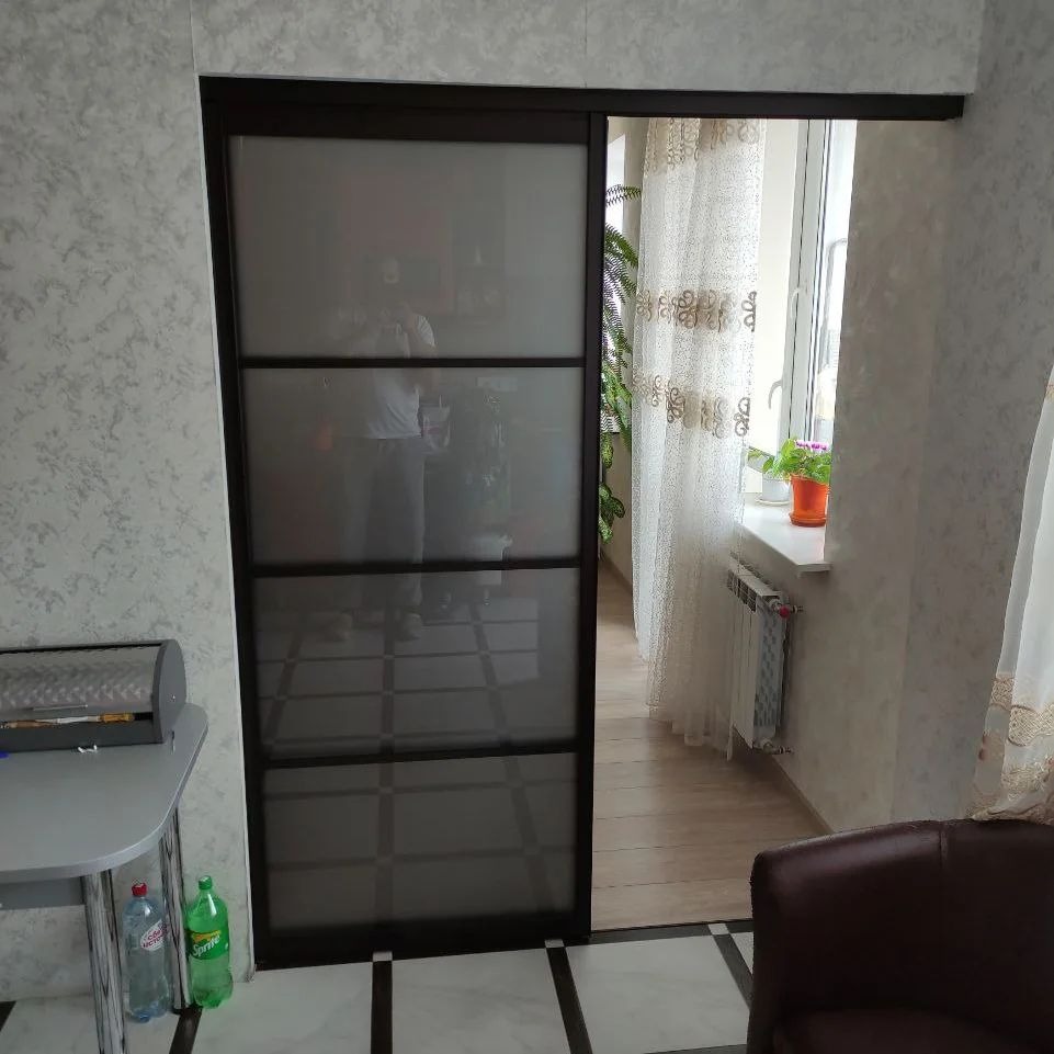 Графитовая перегородка-дверь в дверной проем стекло сатин