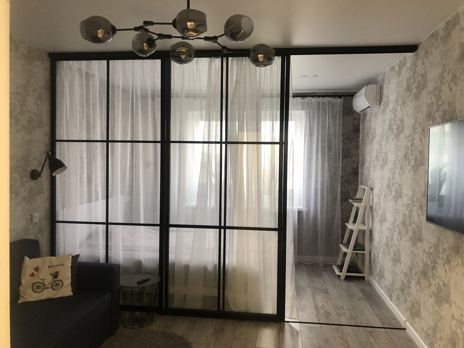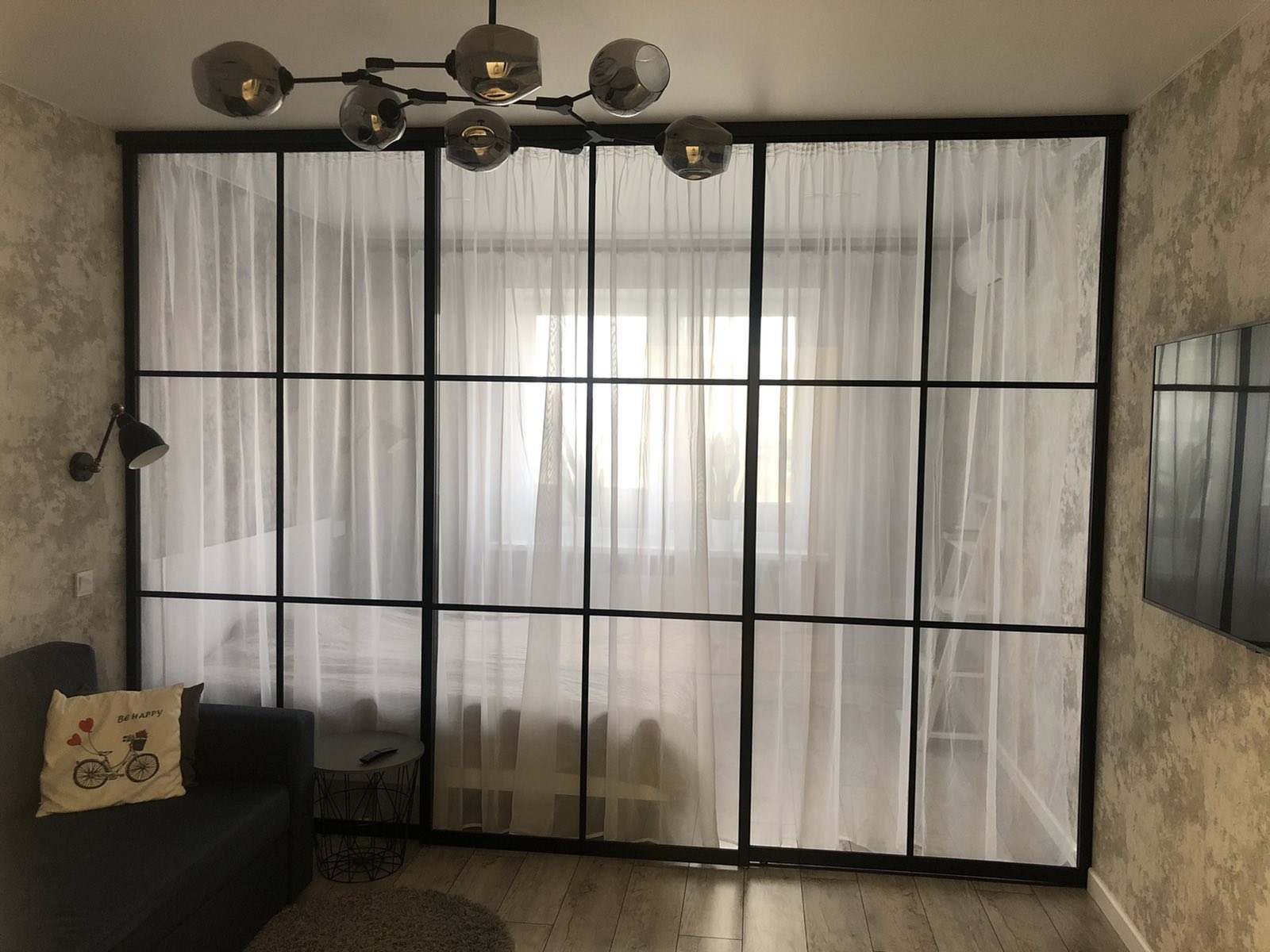 Прозрачная перегородка в стиле лофт