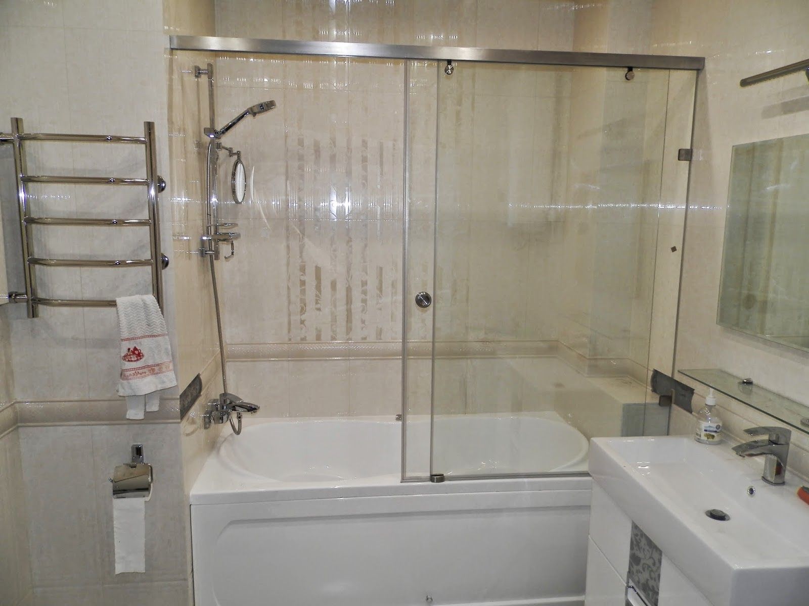 Перегородка из матового стекла, высота 3400мм, 2 подвижные части, 2 неподвижные.