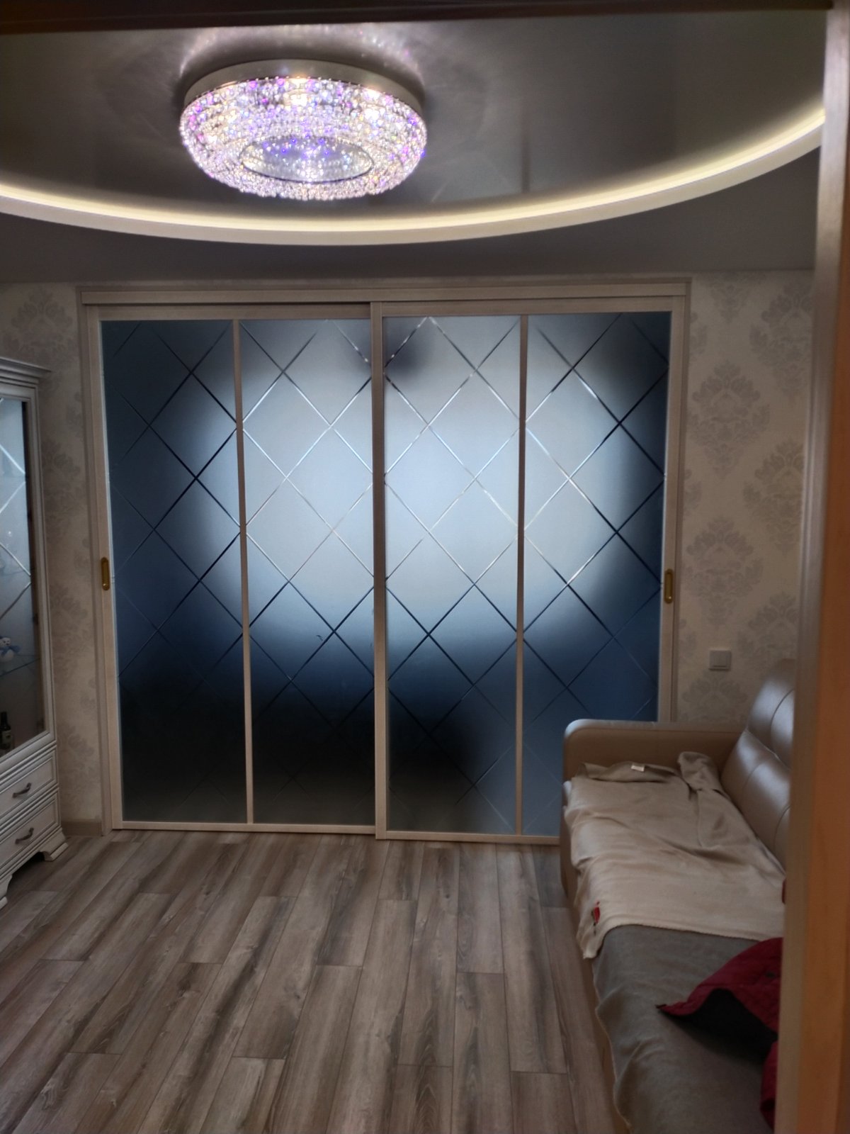 код 122973Стильный и современный дизайн. Тонированное стекло с ромбовидной гравировкой.