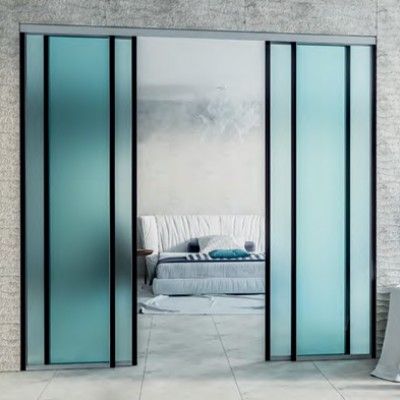 код 112062Раздвижной механизм. Матовое стекло, черный профиль.