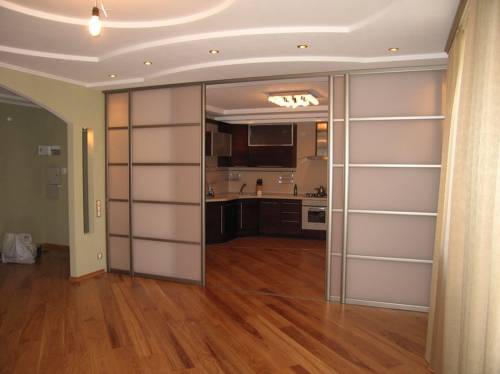 Вариант перегородки для дома. Прозрачное стекло, качественные механизмы.