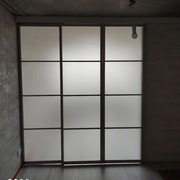 код 101177Раздвижная перегородка из прозрачного стекла на направляющих.