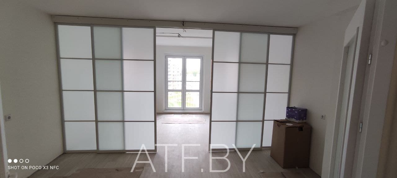 Раздвижной механизм. Матовое стекло, черный профиль.