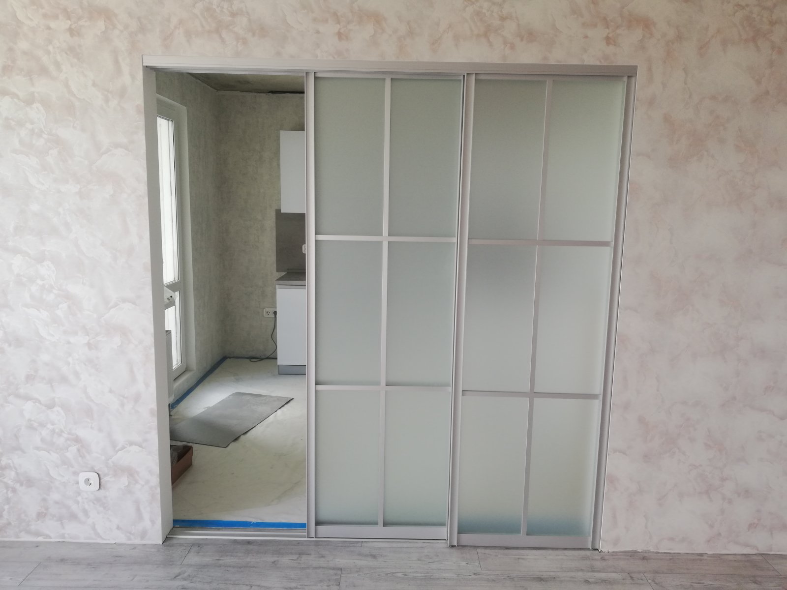 Раздвижной механизм. Матовое стекло, черный профиль.