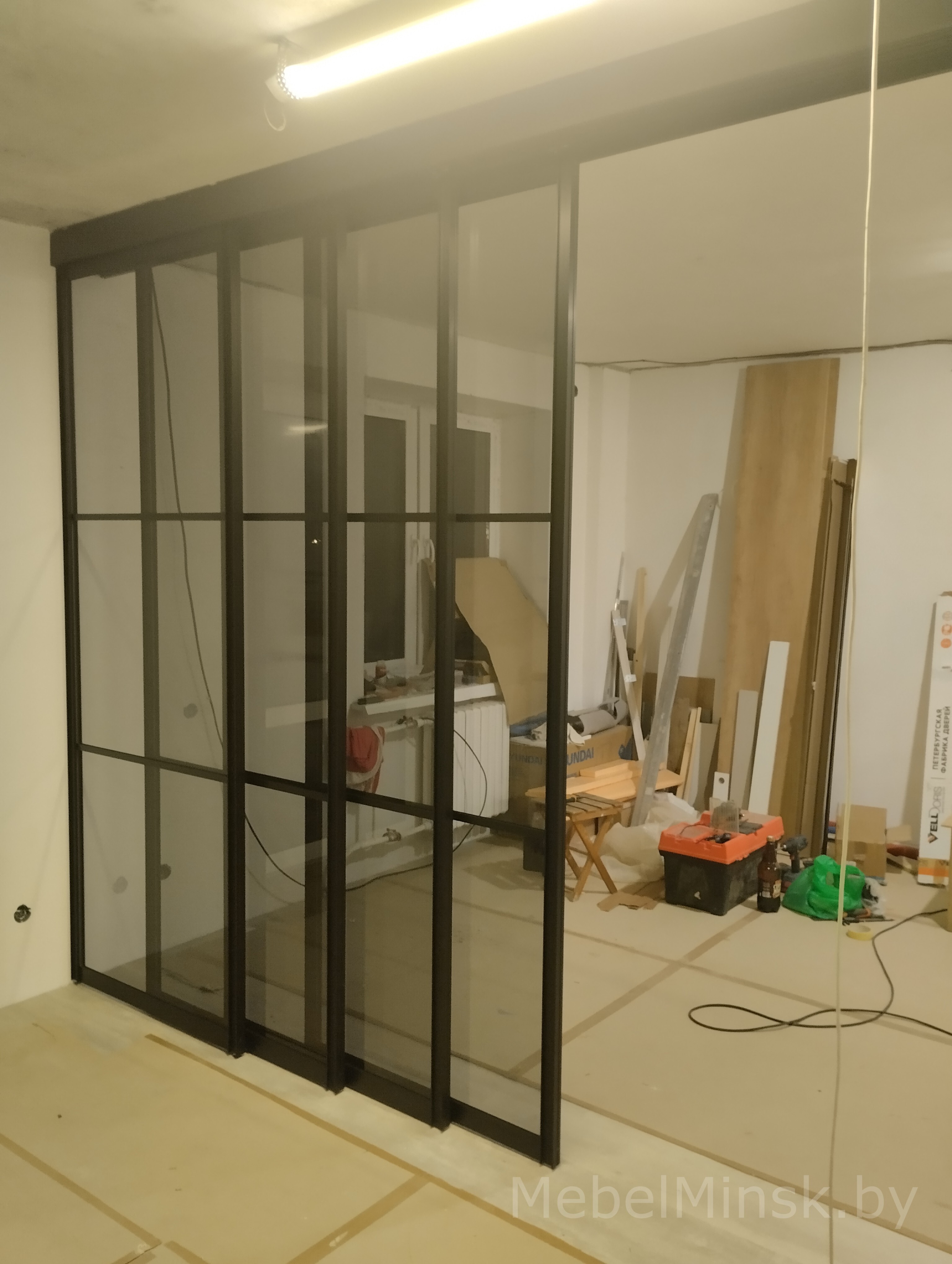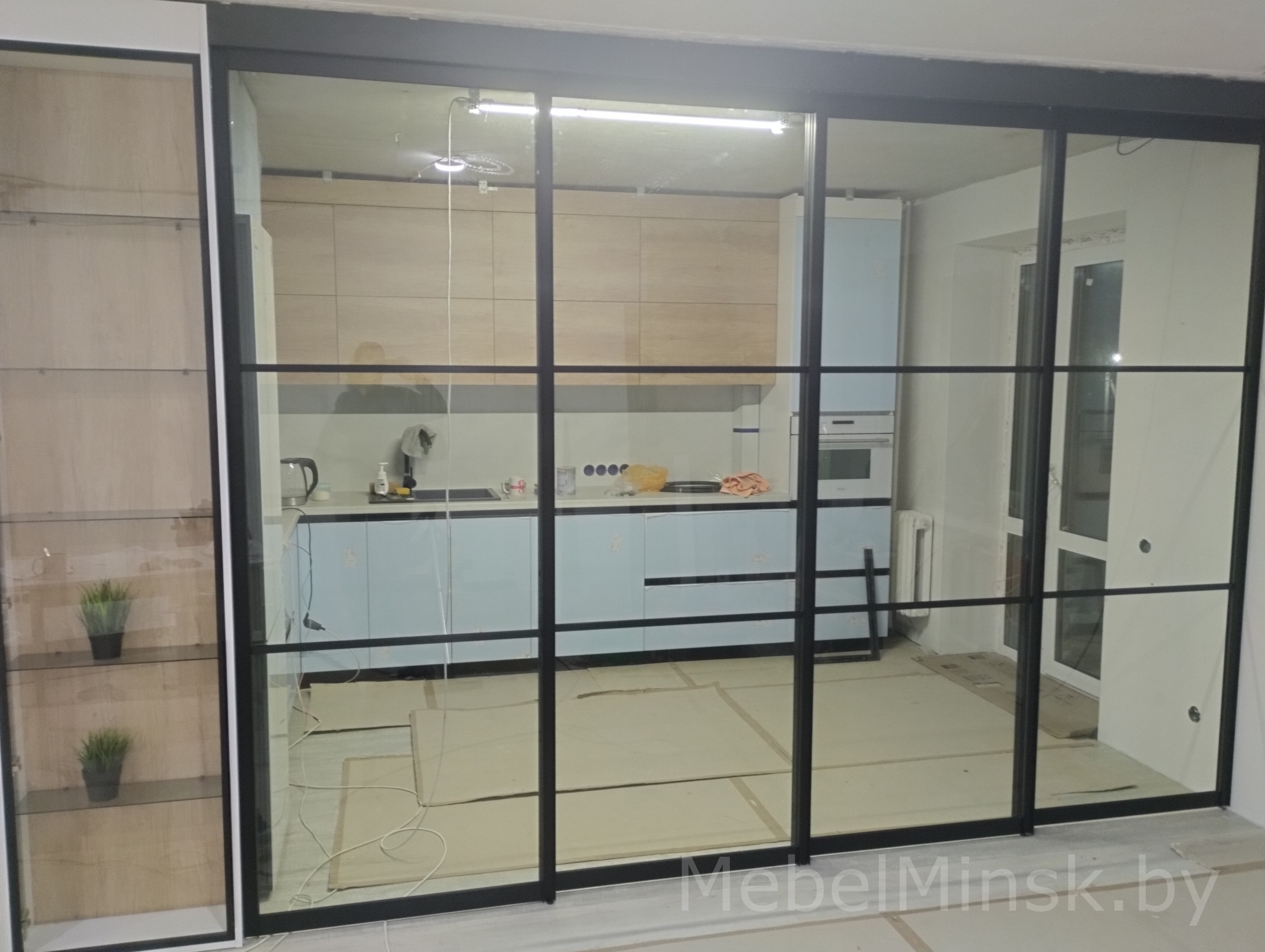 Перегородка с 1 раздвижной и 2 статичными дверями