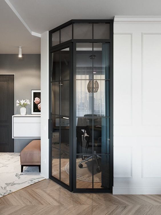 Черная межкомнатная перегородка остекленная