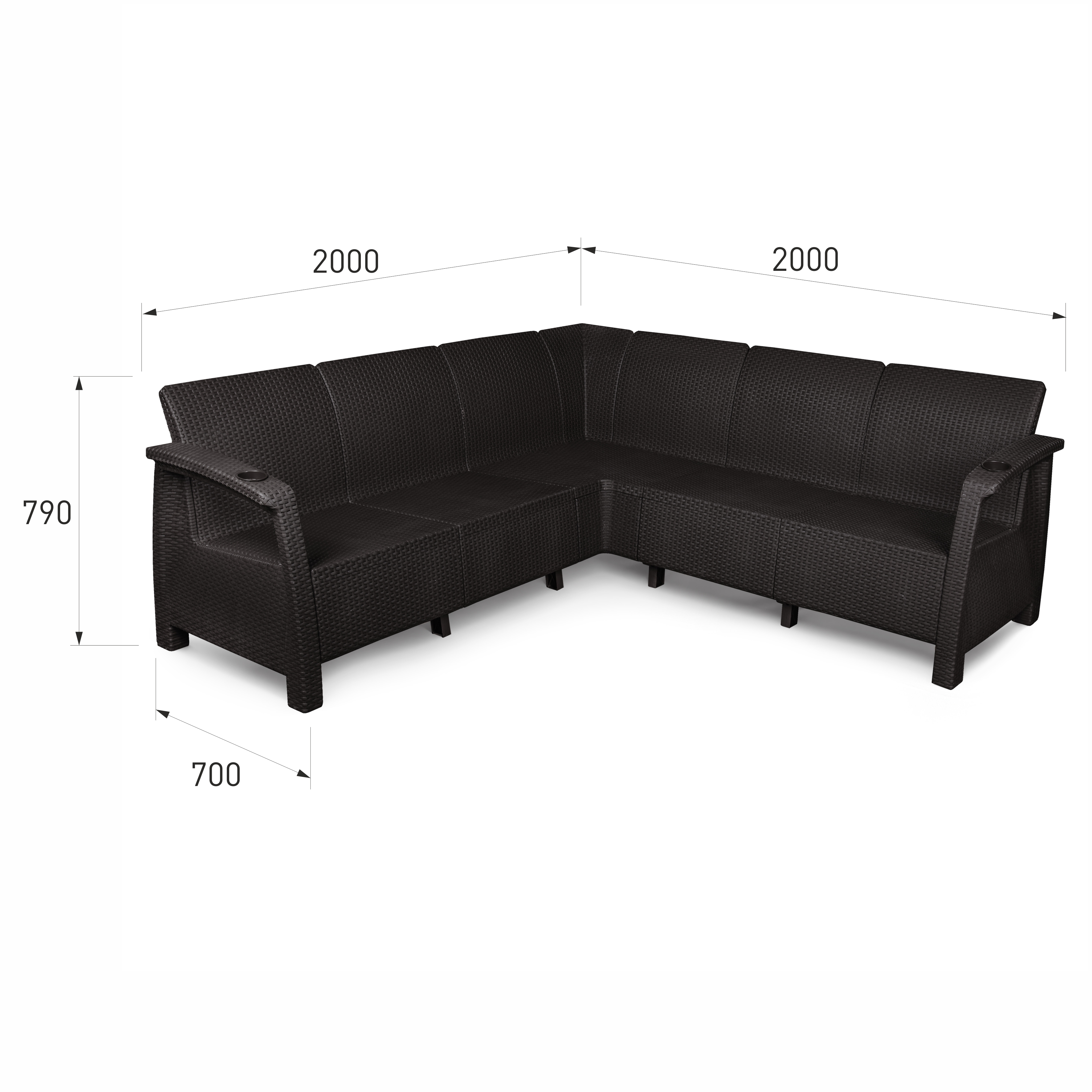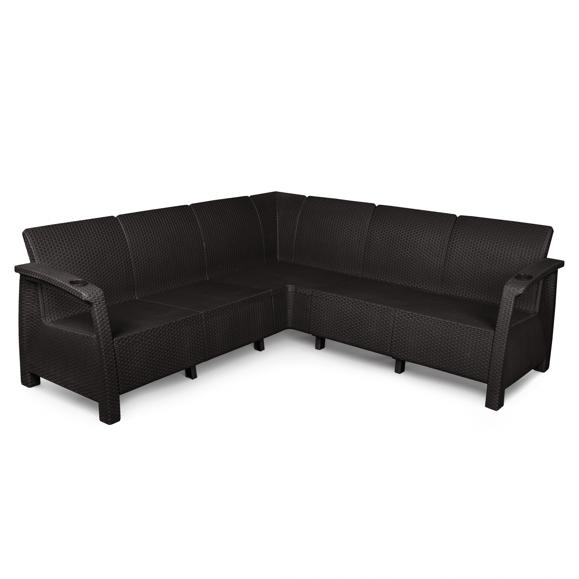 Диван угловой "Ротанг-плюс" имеет стильный и современный внешний вид, гармонично впишется в интерьер зоны отдыха вашего загородного дома. В разобранном виде занимает мало места, легко собирается и разбирается, удобен в перевозке и хранении. В подлокотники встроены специальные отверстия под стаканы. Сделан из высокопрочного и долговечного пластика, прослужит вам долгие годы.
