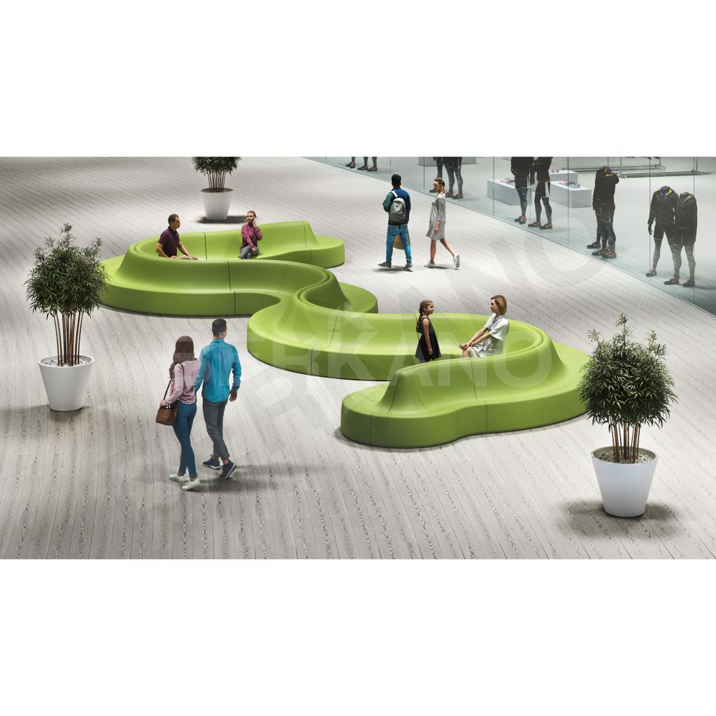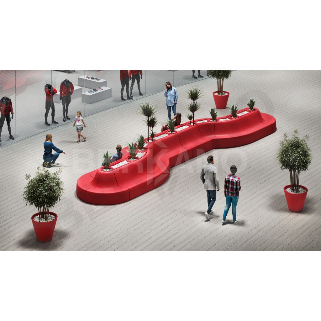 Состоит из модулей Smoov Line, Corner и Arc с предусмотренным местом для кашпо внутри конструкции. Таким образом, данное многофункциональные решение совмещает функции скамейки и озеленения.