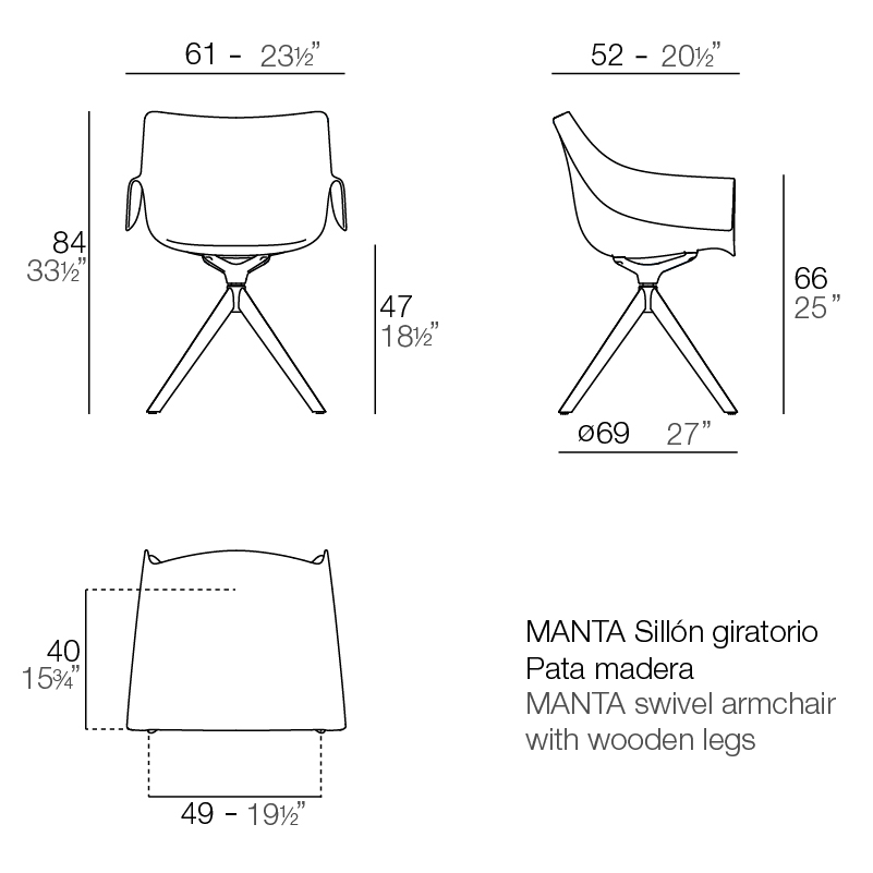Кресло для сада, террасы «MANTA WOODEN SWIVEL ARMCHAIR» (Vondom)