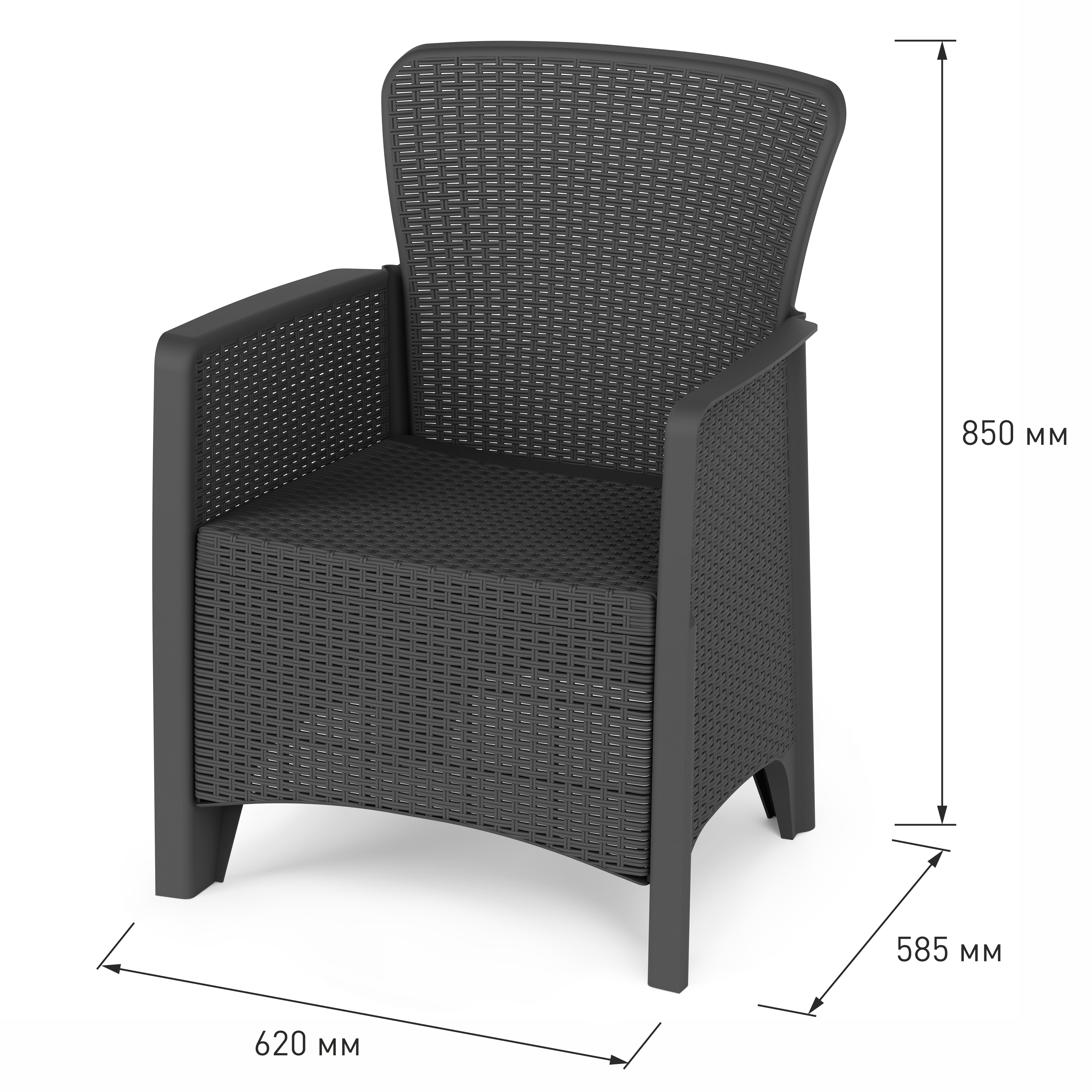 Набор состоит из двух кресел серии «Ротанг-плюс» и стола. Материал: пластик.