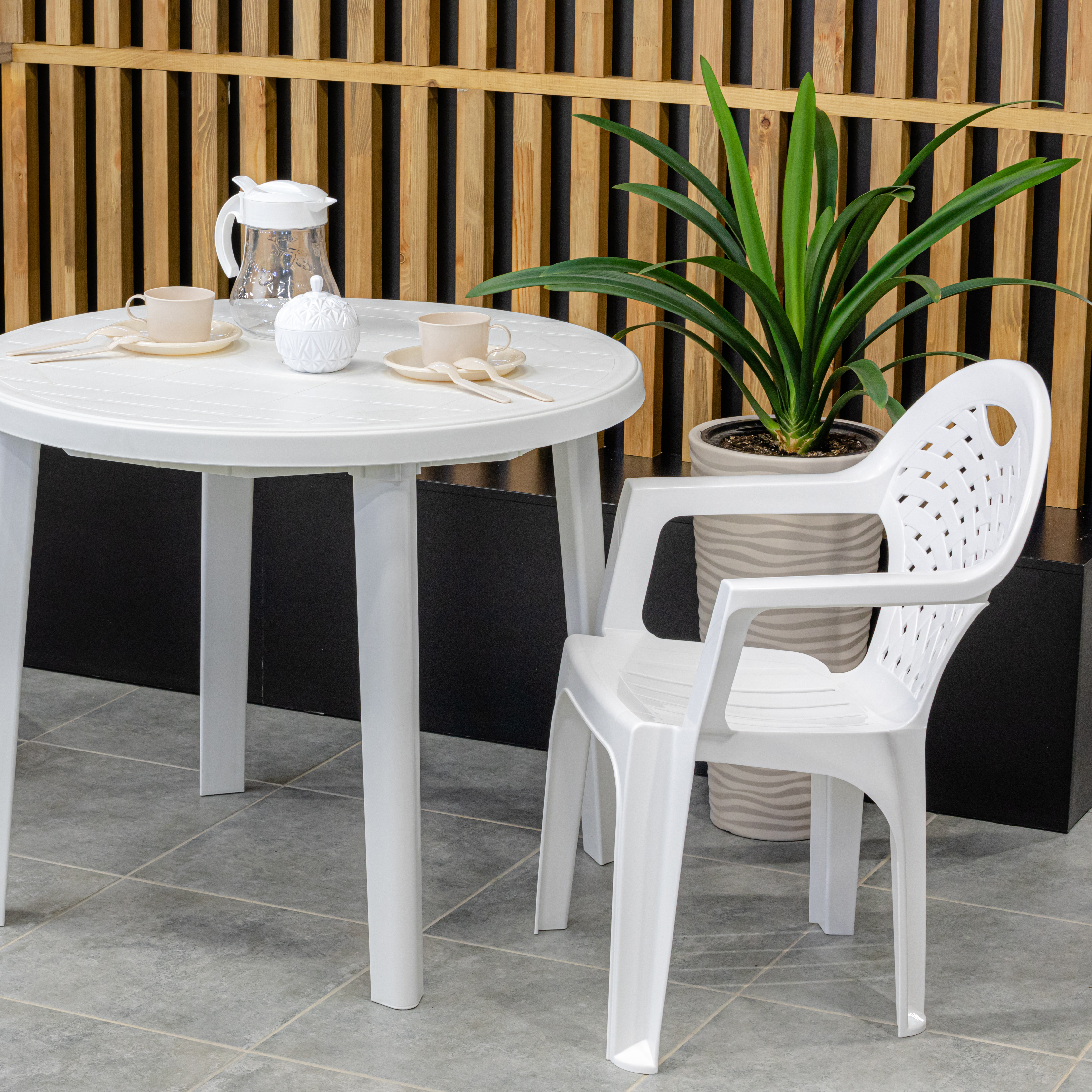 Удобное и комфортабельное кресло , отличный выбор для приятного времяпрепровождения в саду или на природе . Изготовлено из прочного и не токсичного пластика. Изделие имеет легкий вес и возможность тарироваться, что делает его удобным в хранении и транспортировке. В ассортименте имеется стол аналогичного цвета, что позволит вам дополнить комплект.