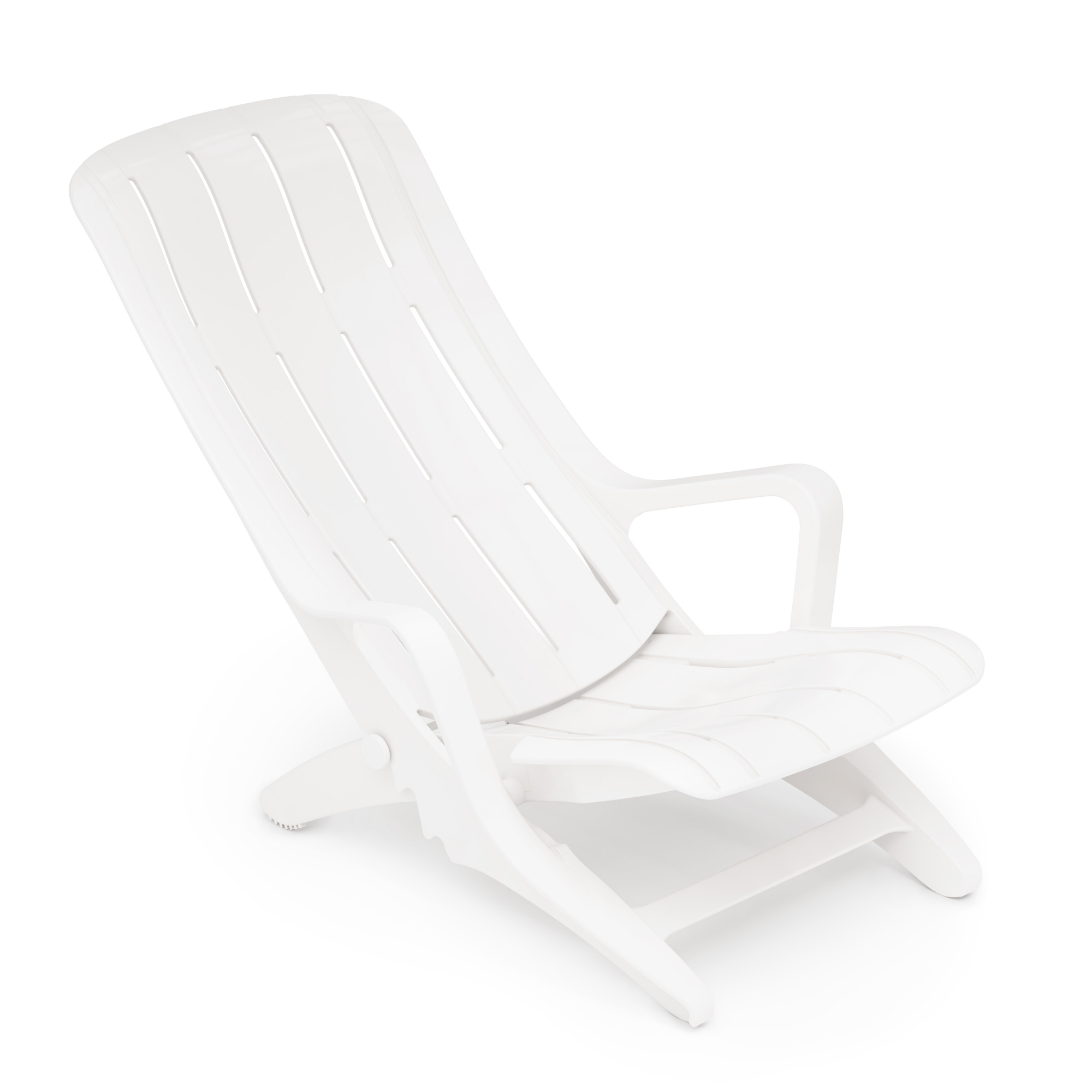 Удобная фиксация спинки в трёх положениях позволяет выбрать наиболее комфортное для отдыха. Полностью складная конструкция, анатомическая спинка и невысокие подлокотник. Кресло-шезлонг выдерживает высокие температуры и не выгорает на солнце. Максимальная нагрузка кресла составляет 100 кг, что делает его подходящим для большинства пользователей.
