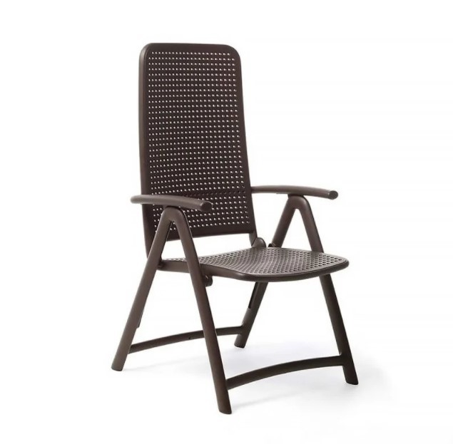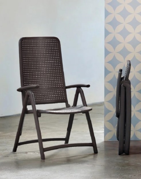 Darsena - складное кресло для отдыха на открытом воздухе, выполненное из прочного армированного полипропилена. Кресло имеет высокую спинку, которую можно регулировать в 4 положениях, а также подлокотники для удобного расположения. Текстура поверхности перфорированная (перфорация «круглая точка»), матовая, устойчива к УФ-излучению. Ножки нескользящие.