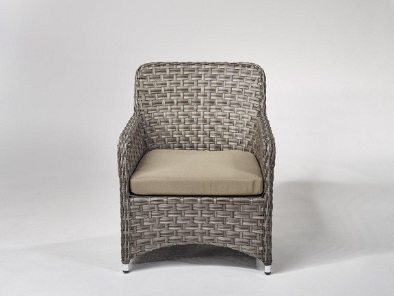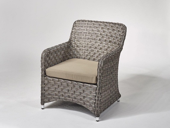 Мебельный набор для сада «Bari» состоит из небольшого журнального столики, двух кресел и двухместного диванчика. Основой конструкции является прочный металлический каркас. Отделка выполнена в виде плетения. На стол накладывается столешница из закаленного стелка, а в комплекте с креслами и диваном идут мягкие подстилки на сиденья. Набор выполнен в едином стиле и окрашен в серые цвета.