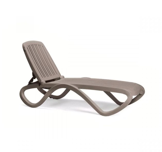 Шезлонг без подлокотников выполнен из полипропилена с УФ-защитой. Спинка лежака может принимать до 4-х положений. Благодаря трубчатой раме шезлонг имеет небольшой вес.