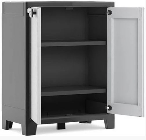 Водонепроницаемый пластиковый шкаф - превосходное решение для хранения в саду! В шкафу предусмотрено 3 полки, с допустимой максимальной нагрузкой на каждую до 30 кг! Шкаф можно установить на террасе, крыльце или в саду. Бытовые средства уборки, контейнеры с мелочью, садовые принадлежности, коробки, строительные аксессуары и многое другое будет надежно спрятано от посторонних глаз и защищено от ветра и влаги в этом вместительном шкафу.