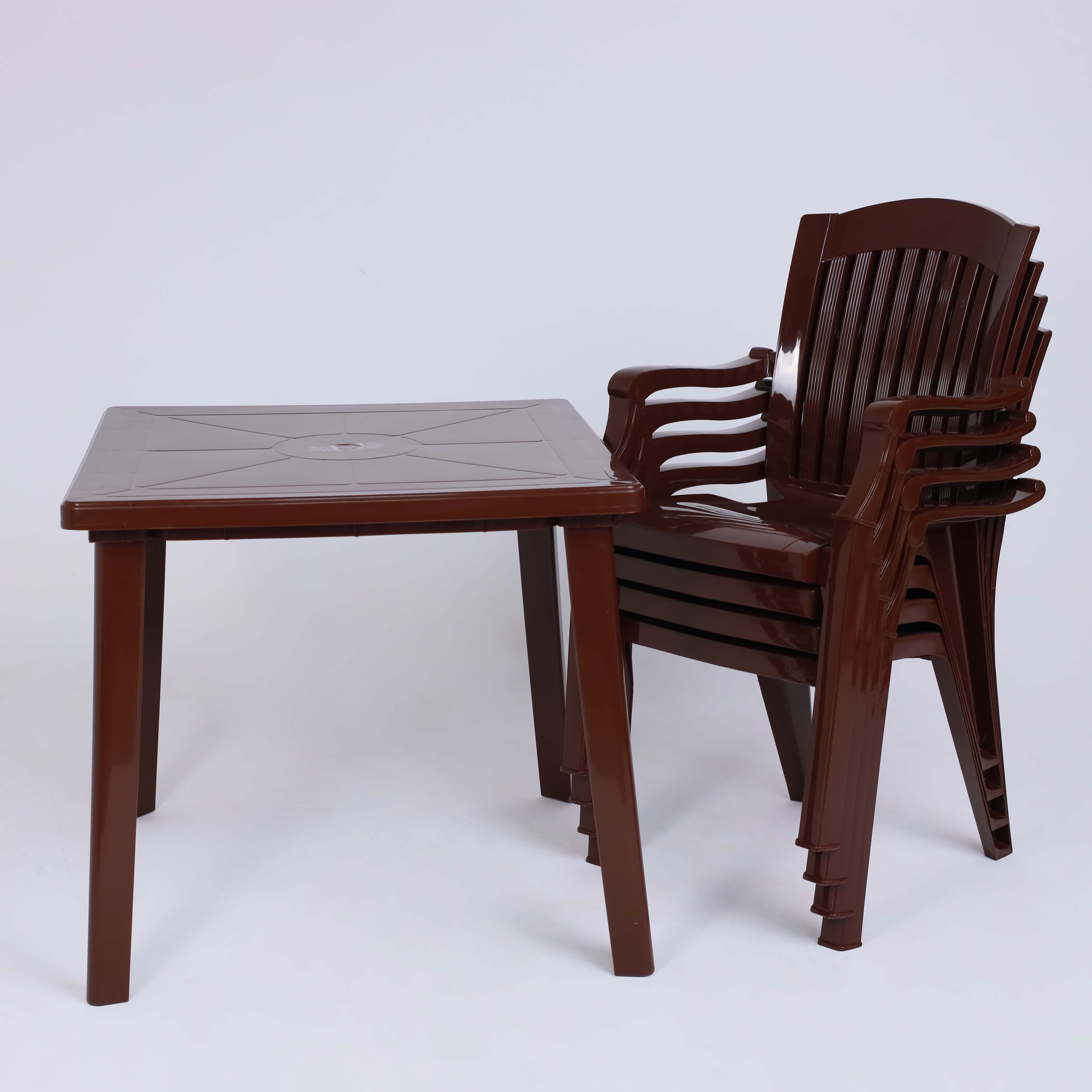 Стол выполнен из полипропилена, устойчив к неблагоприятным погодным условиям и УФ-излучению.