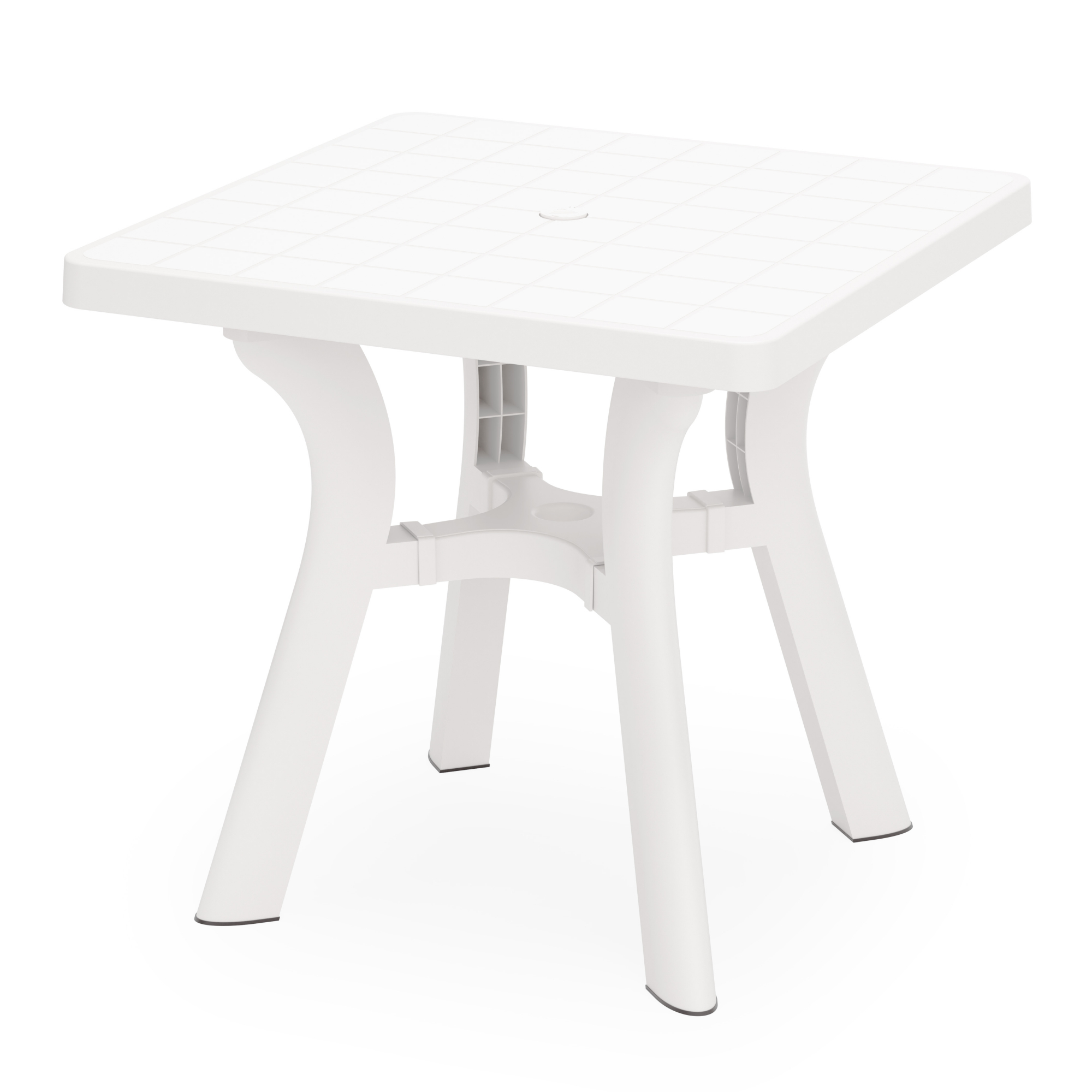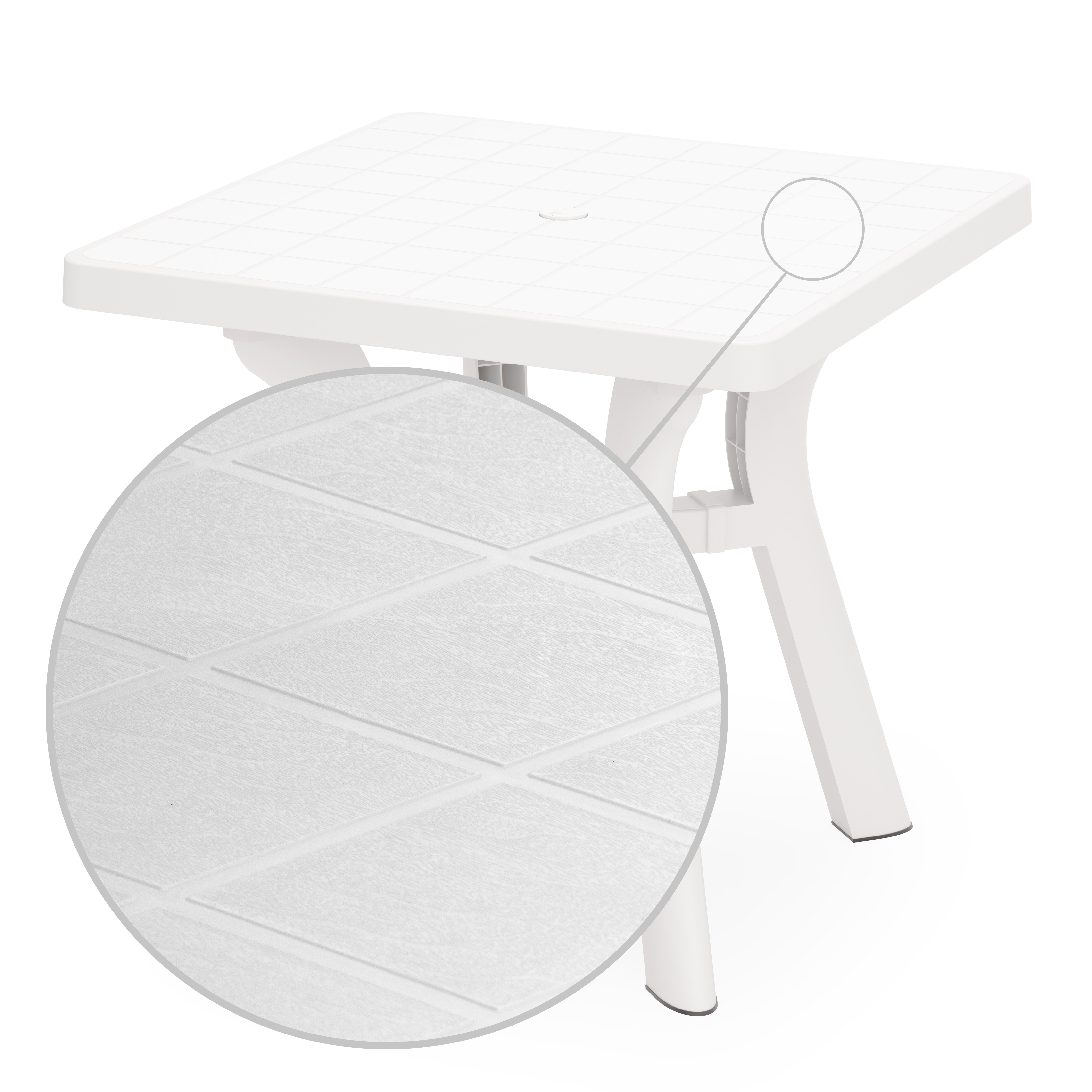 Стол квадратный "Атлант" имеет прочную конструкцию и устойчивый каркас, выдерживает воздействие внешних факторов, не теряя своего первоначального облика и качества. Изогнутые ножки соединены между собой крестовиной, что придает столу особую устойчивость. Ножки регулируются по высоте. Конструкция полностью разборная, что облегчает транспортировку и складирование. В центре столешницы имеется отверстие с заглушкой для установки зонта. Скругленные углы обеспечат более безопасное использование. Особенность данного стола в текстуре столешницы, которая имитирует дерево.