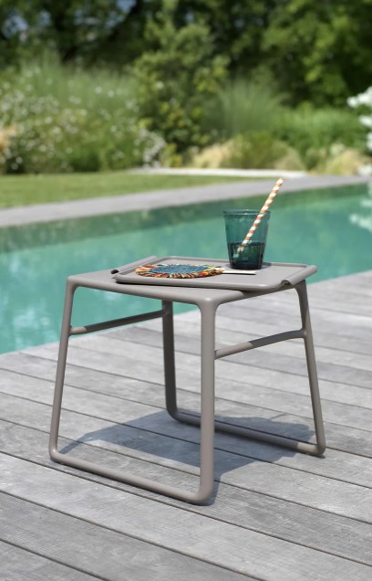 Столик для шезлонга Pop оснащен нескользящими ножками, изготовлен из окрашенного полипропиленового стекловолокна.