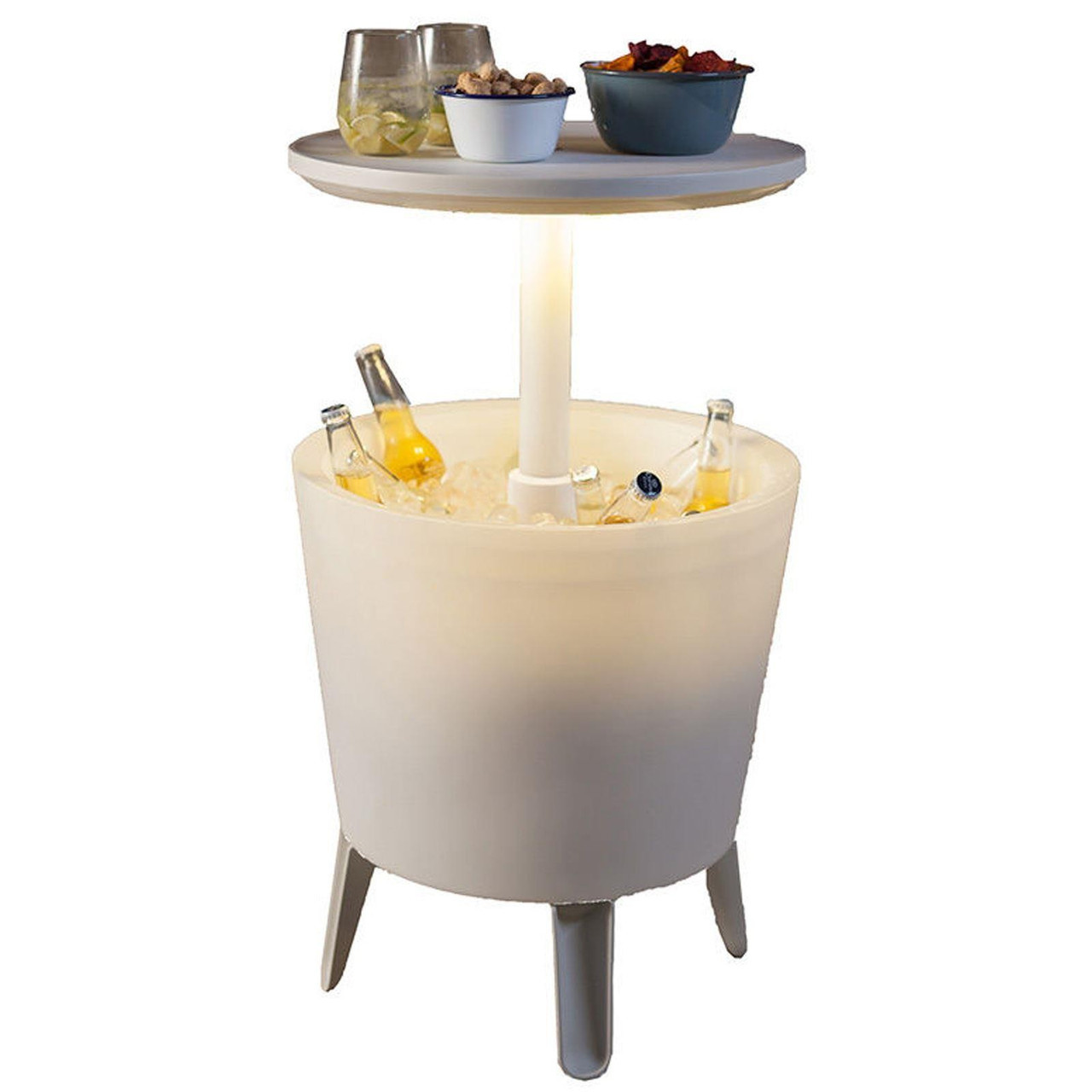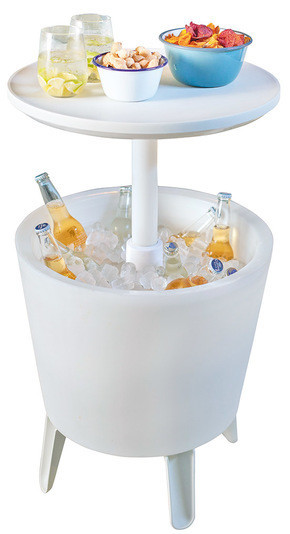 Небольшой столик-холодильник «Illuminater Cool bar» украсит собой оборудованное место в саду или на веранде. Холодильная камера заполняется льдом и не имеет собственных элементов охлаждения. В пластиковой ножке стола встроена подсветка, придающая в темное время суток необычайный уют окружающему пространству.