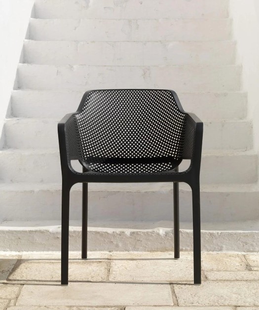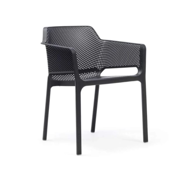 Стул Net – стильный и изящный литой стул с квадратной перфорацией по всему сиденью. Кресло имеет закругленную форму и подлокотники. Нескользящие ножки с матовым покрытием. Материал, из которого выполнено кресло, является сочетанием стекловолокна и смолистого полипропилена, устойчив к механическим повреждениям, УФ-излучению, атмосферному воздействию.