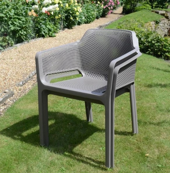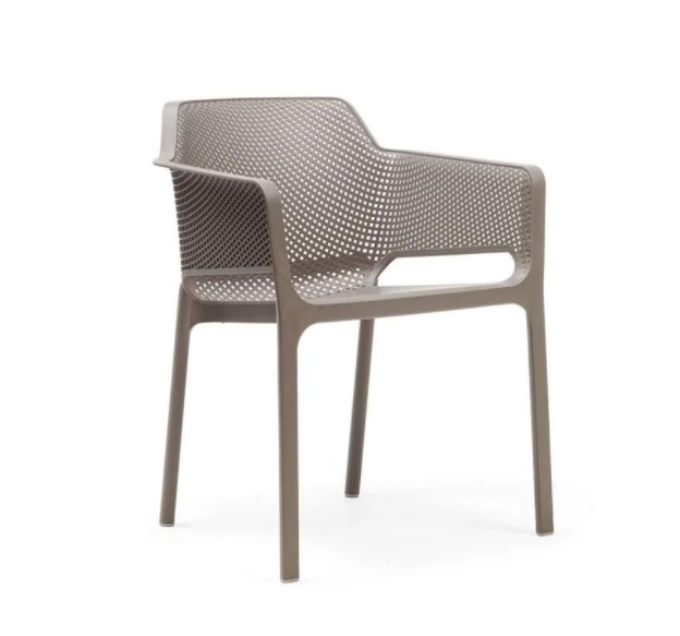 Стул Net – стильный и изящный литой стул с квадратной перфорацией по всему сиденью. Кресло имеет закругленную форму и подлокотники. Нескользящие ножки с матовым покрытием. Материал, из которого выполнено кресло, является сочетанием стекловолокна и смолистого полипропилена, устойчив к механическим повреждениям, УФ-излучению, атмосферному воздействию.