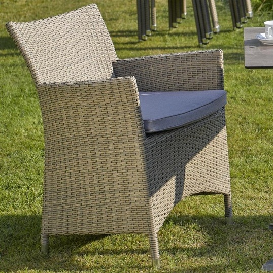 Размер: 90x120x76 см. Каркас: алюминий, в комплекте стекло закаленное 6 мм, плетение ажурное 7-10 мм, штабелируемый.