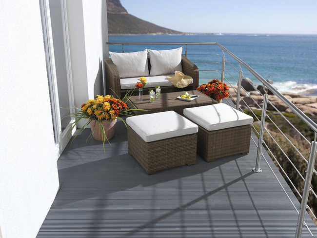 Комплект «Jersey» отличается не только стильным дизайном, но и высокой функциональностью. Набор состоит из четырех частей: стол, два пуфа и двухместный диванчик. Комплект практичен и не займет много места в доме, на балконе или в саду.