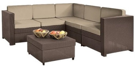 Комплект мебели «Keter Provence Set» - это широкий угловой диван для беседки или сада. Набор включает также удобный низкий столик. Корпус мебели выполнен из искусственного ротанга, а плетение приятно не только внешне, но и на ощупь. Набор комплектуется декоративными подушками, используемыми в качестве спинки и сиденья.