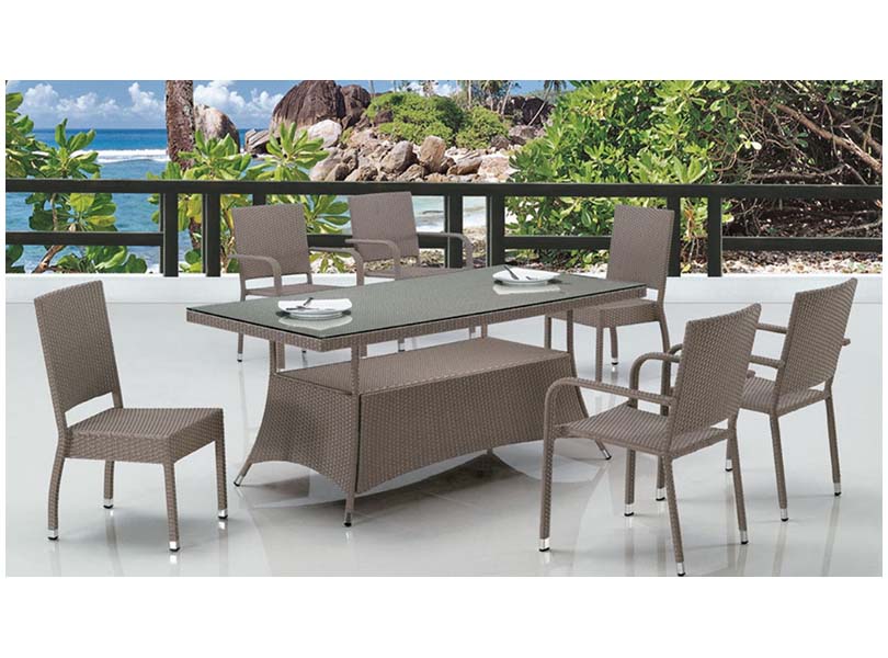 Размер: 70x70x76 см. Кант: алюминий, в комплекте стекло закаленное 6 мм, плетение ажурное 8-11 мм, штабелируемый.