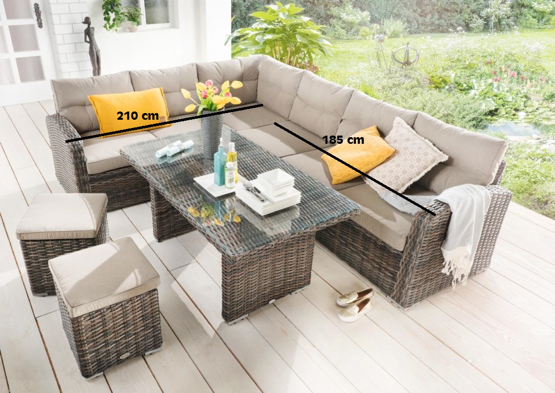 Размер (ШхВхГ): 141x78x82 см. Каркас: алюминий, в комплекте подушки, плетение ажурное 7-10 мм.