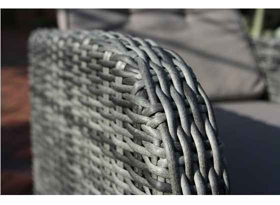 Кресло «Bahia» выполнено из искусственного ротанга и алюминия, который создает очень прочный каркас, модель представлена в колониальном стиле. Представленная на фото кресло характеризуется изящными формами и плавными изгибами, а винтажно-серый цвет в сочетании с ручным плетением придает ей роскошный вид. Спинка имеет возможность регулирования в нескольких положениях.