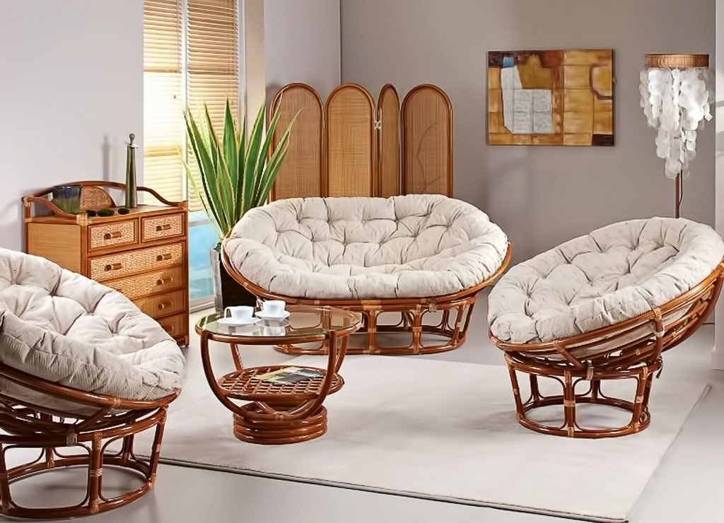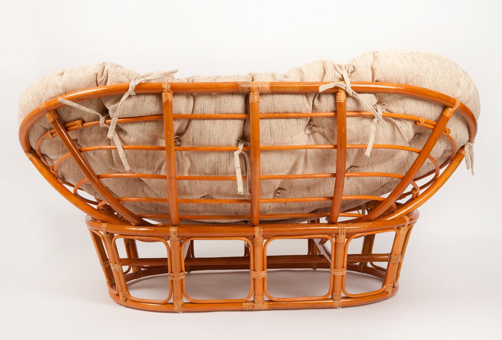 Габариты (ШхГхВ): 78х203х56 см (можно изменить). Материал: металл, искусственный ротанг, ткань.