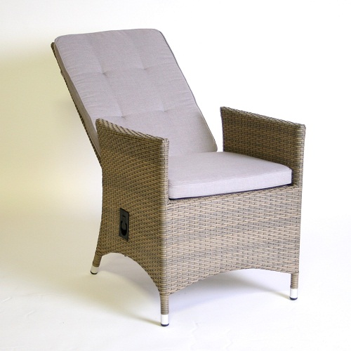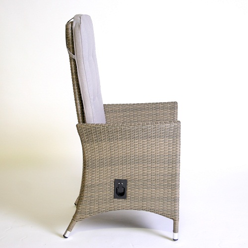 Очень элегантное кресло «Carlos» изготовлено из искусственного ротанга и выполнено на алюминиевом каркасе, который прекрасно выдерживает большие нагрузки. Модель отличается тем, что имеет регулируемую спинку, за счет чего становится еще более удобным и функциональным атрибутом.