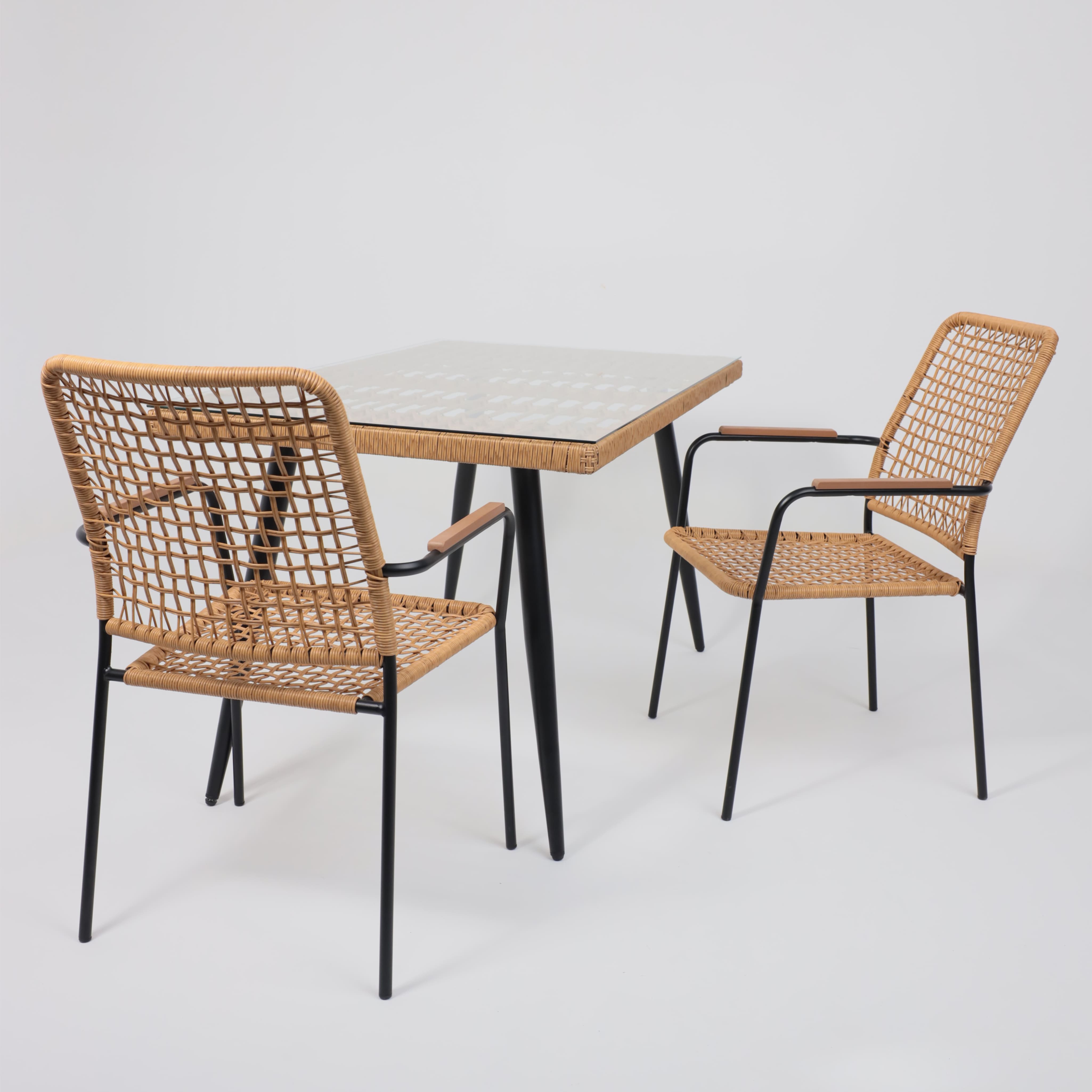 Размер (ШхВхГ): 75x75x82 см. Каркас: алюминий, в комплекте подушки, плетение ажурное 7-10 мм.