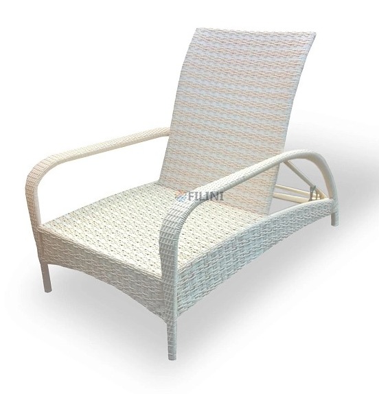 Каркас кресла шезлонга изготовлен из тонкостенной стали с нанесенным на нее защитным полимерным покрытием и имеет прочную сварную конструкцию, вес которой придает ему устойчивость к опрокидыванию даже при сильных порывах ветра.