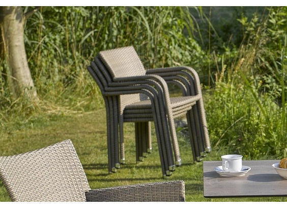 Кресло штабелируемое «Carlos представляет собой очень интересную и утонченную модель, которая не только прекрасно впишется на любую террасу, но и может быть использована для проведения очень романтичных и элегантных свадебных церемоний. Модель выполнена в бежево-сером цвете.