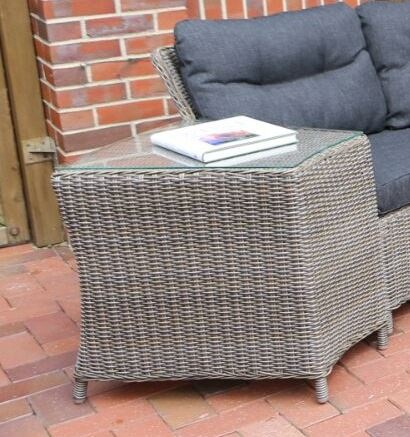 Размер (ШхВхГ): 100x100x76 см. Каркас: алюминий, в комплекте стекло закаленное 6 мм, плетение 7-10 мм.