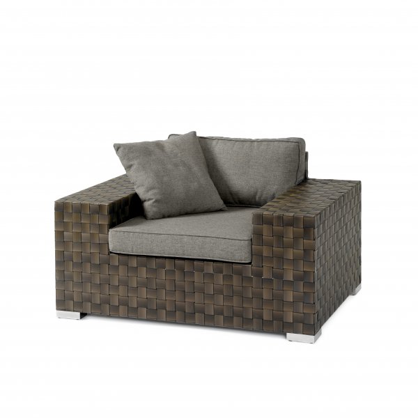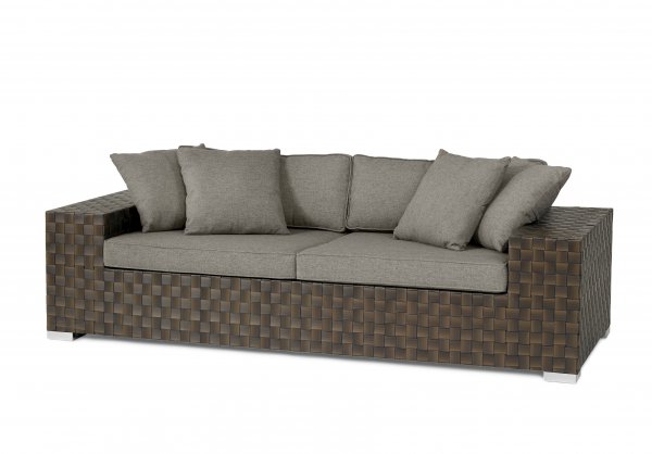 Allegro – это серия плетеной мебели из искусственного ротанга на металлическом каркасе. Искусственный ротанг представляет собой переплетение , внешне напоминающее шахматную доску. В набор мебели входит диван, два кресла и стол со стеклянной столешницей. Ровные прямые линии и коричневый цвет придают мебели строгость и лаконичность.