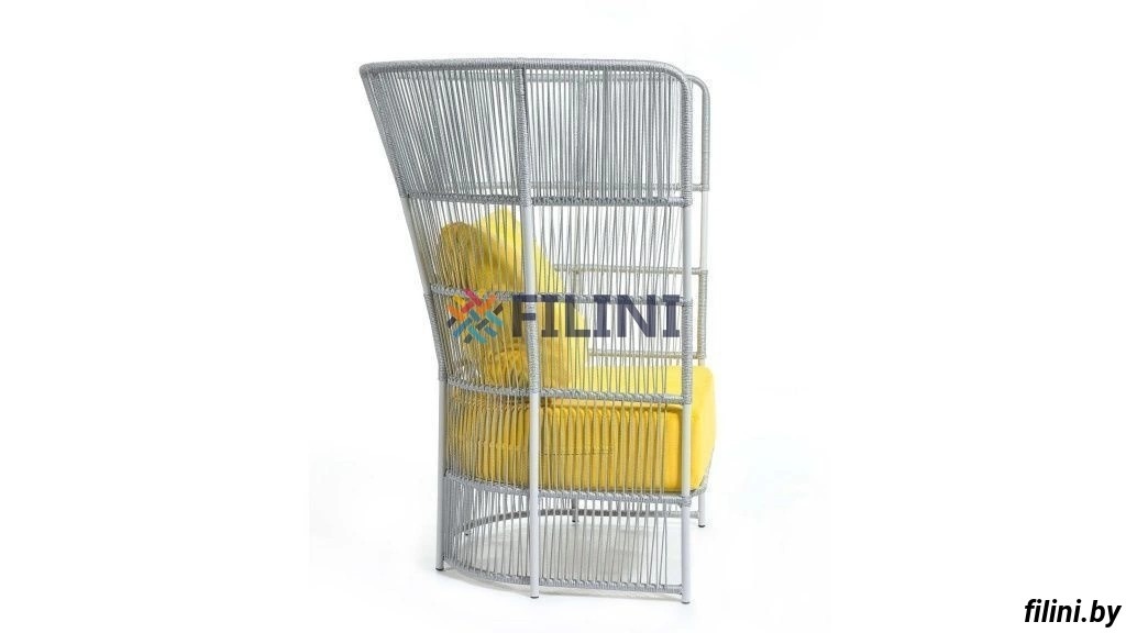 Габариты (ШхГхВ): 70х198х76 см (можно изменить). Материал: металл, искусственный ротанг, ткань.