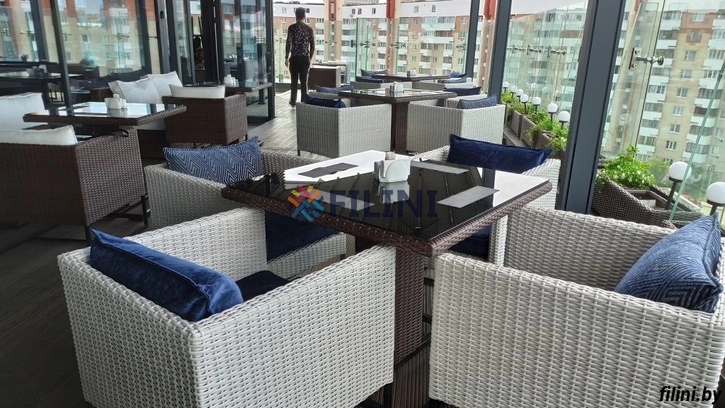 Лаконичность и внешняя простота дизайна данной модели позволяет ей с легкостью вписываться в интерьер современного ресторана, кафе, террасы или приусадебного участка оформленного в стиле "Лофт" и занимать достойную нишу во всем разнообразии плетеной уличной мебели.