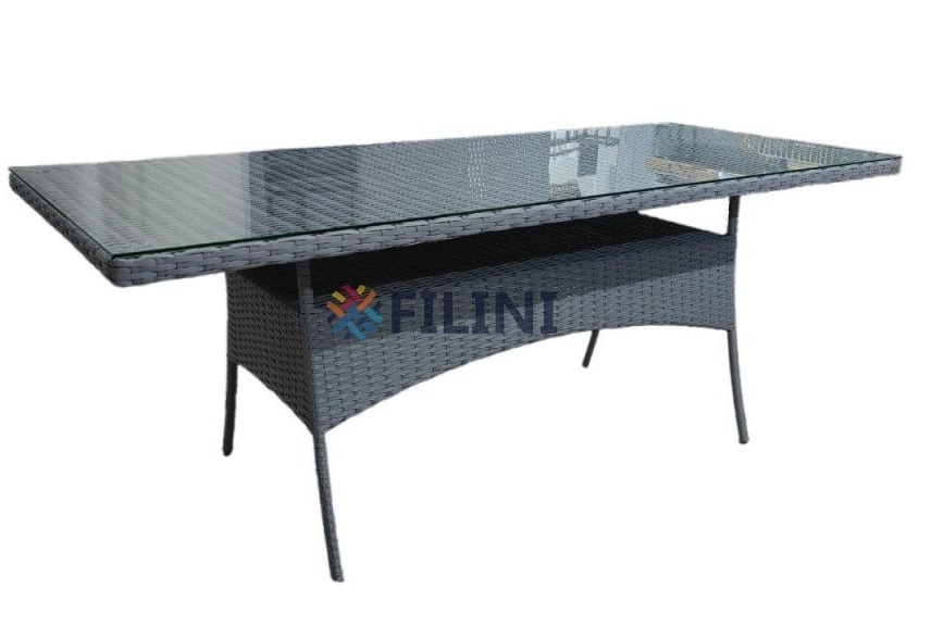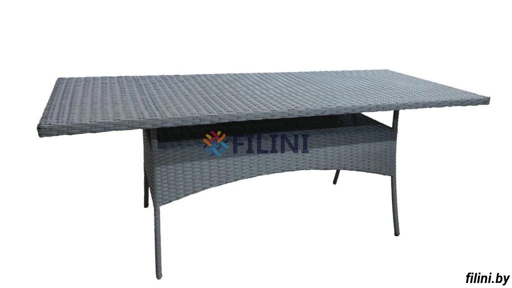 Размер: 90x150x76 см. Каркас: алюминий, в комплекте стекло закаленное 6 мм, плетение ажурное 7-10 мм, штабелируемый.