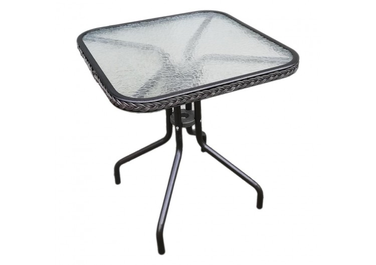 Размер: 70x70x76 см. Кант: алюминий, в комплекте стекло закаленное 6 мм, плетение ажурное 8-11 мм, штабелируемый.